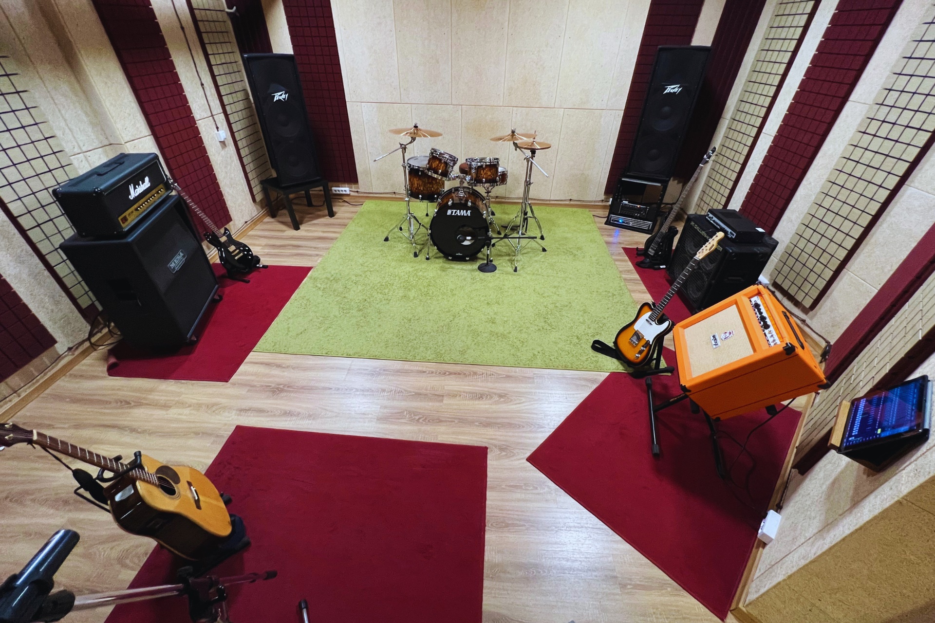 Record studio4 - это зал для репетиций музыкальных коллективов численностью не более 6 человек.