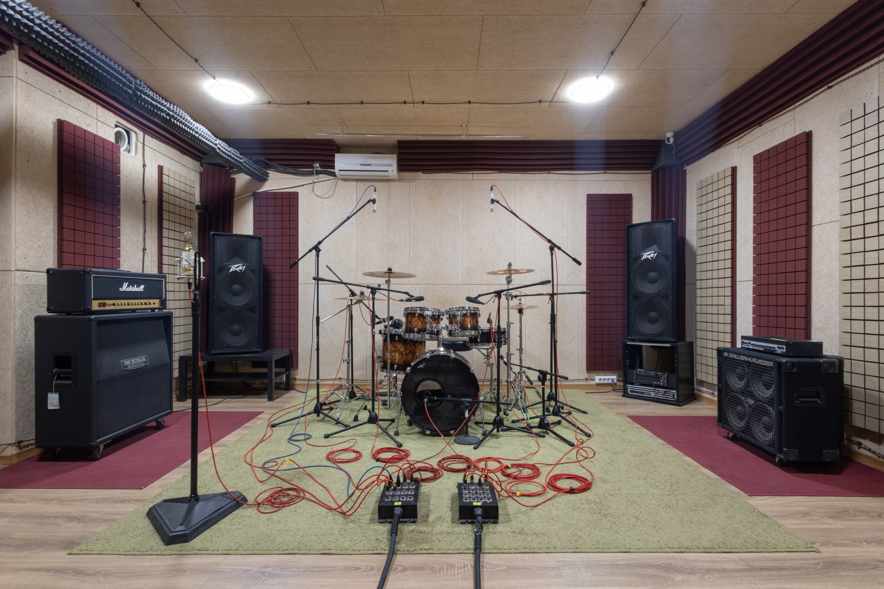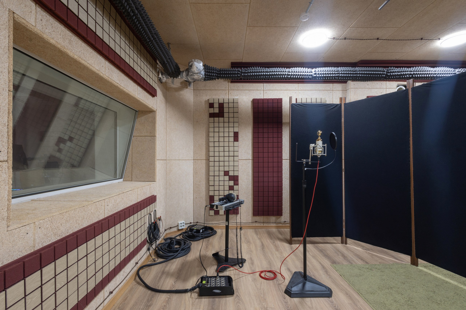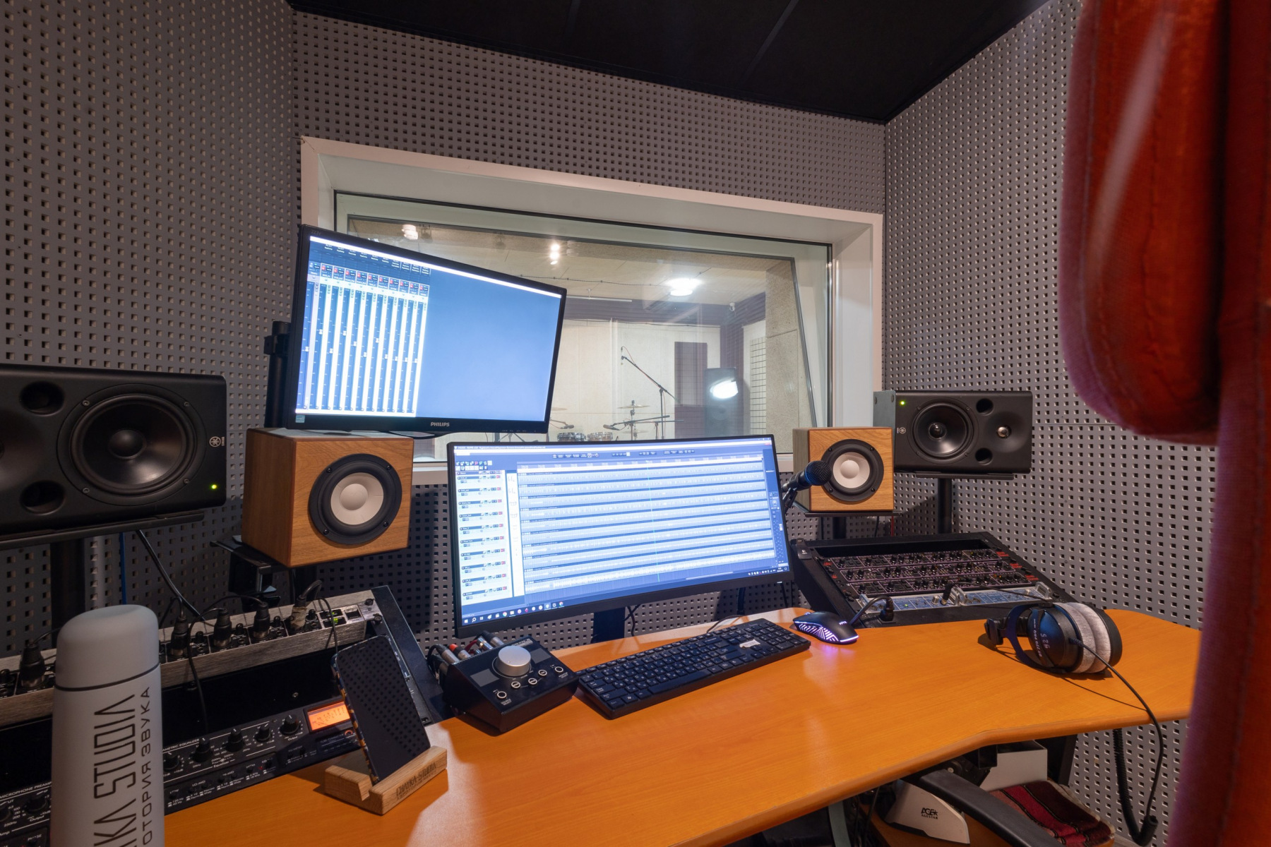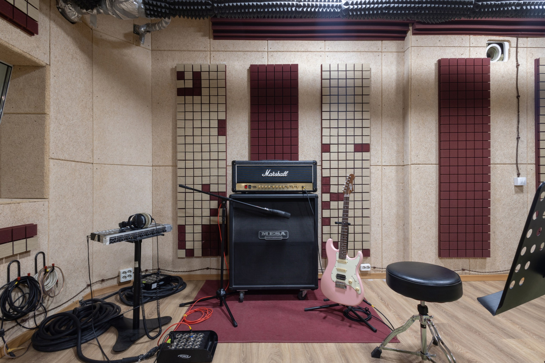 Студия звукозаписи - состоит из полноценного Тон-зала 27 м2 и контрольной комнаты 13 м2.