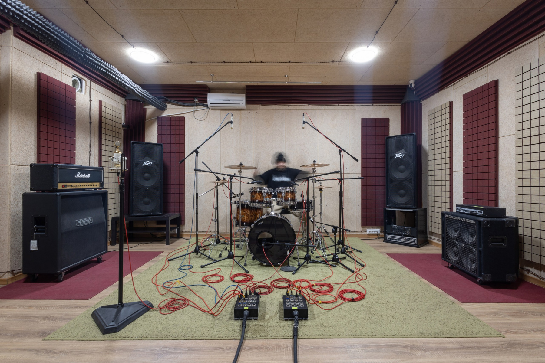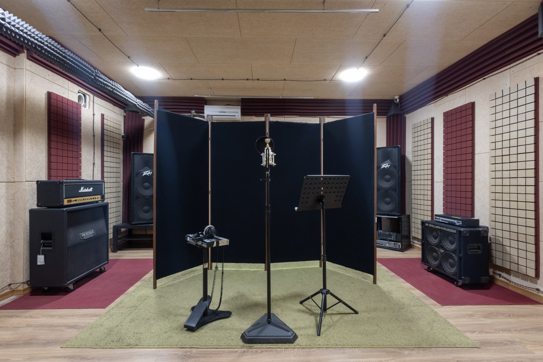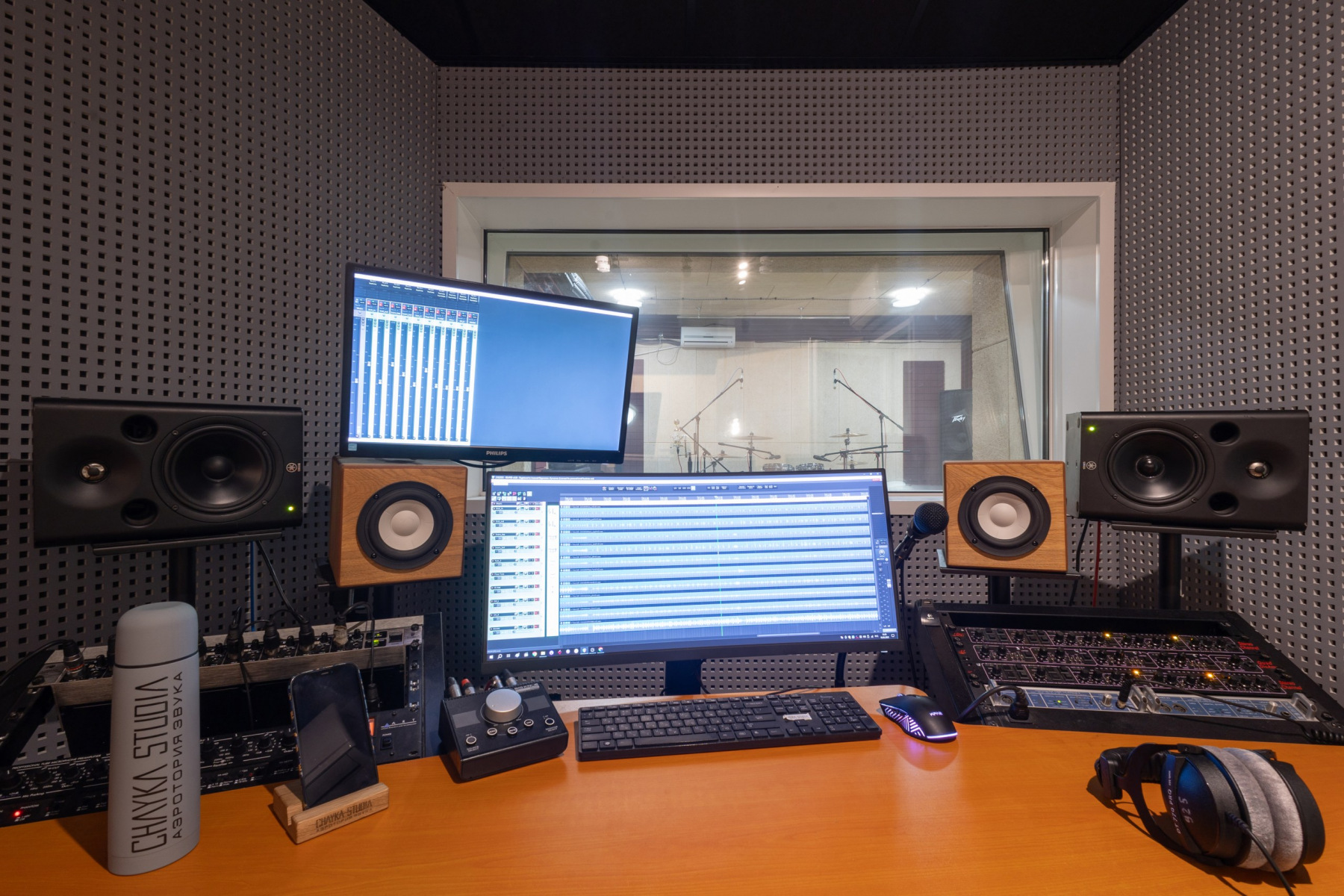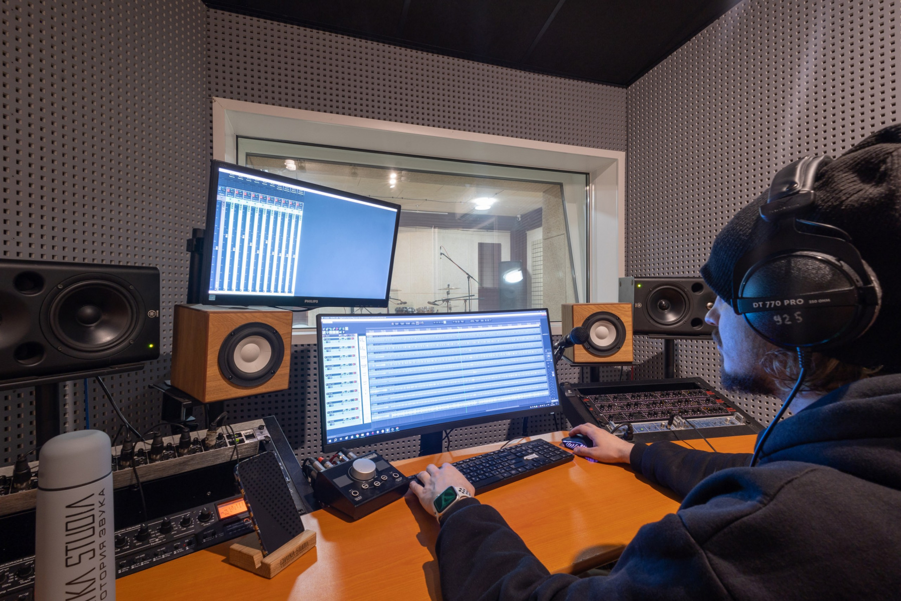 Студия звукозаписи - состоит из полноценного Тон-зала 27 м2 и контрольной комнаты 13 м2.