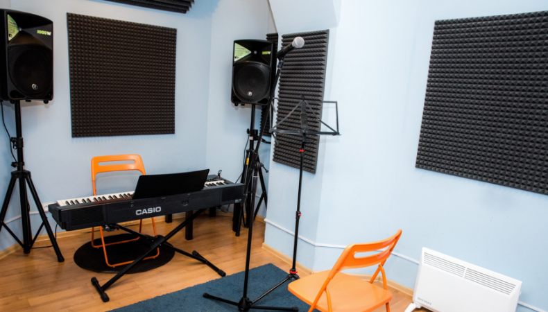 Вокальный зал №1 - это класс для индивидуальных занятий с преподавателем по вокалу, и любому другому инструменту, кроме барабанов.